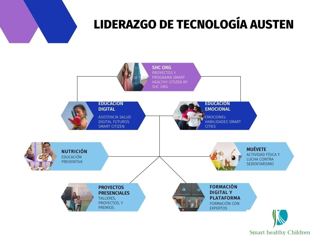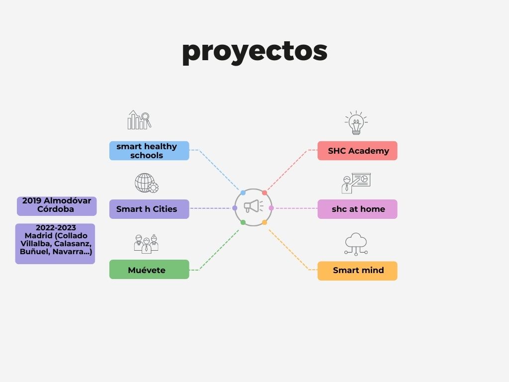 Estas tres áreas tienen un proyecto individual: Smart Healthy Schools, Smart Healthy companies y SHC AT HOME.